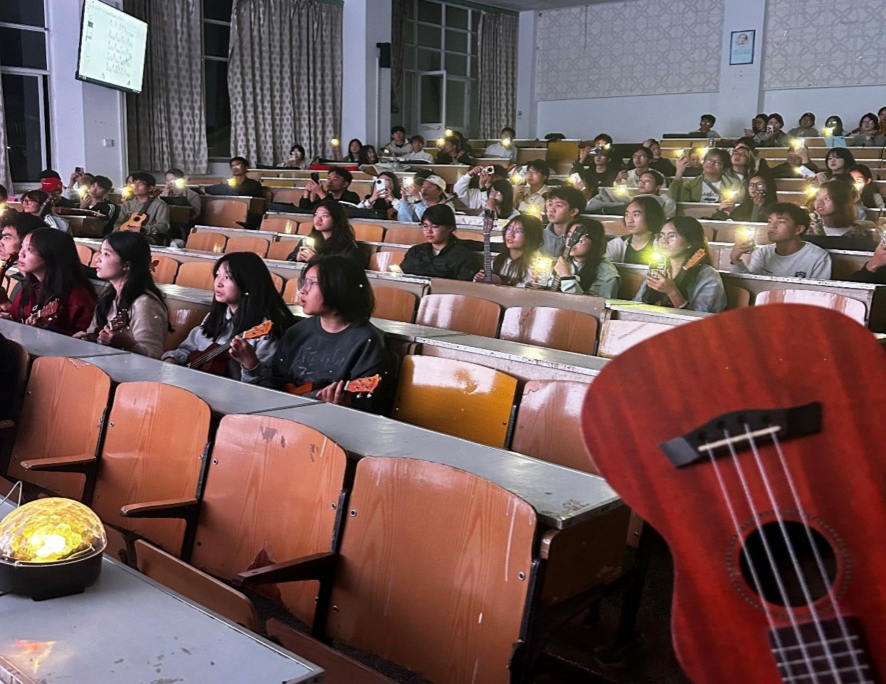 20251113日,代星老师的美育课程《老员工尤克里里弹唱》的课程实践“烛光音乐会”展演顺利举办,本次活动是2026年国际足联世界杯2025“艺韵云农,美育焕新”主题系列活动之一。
