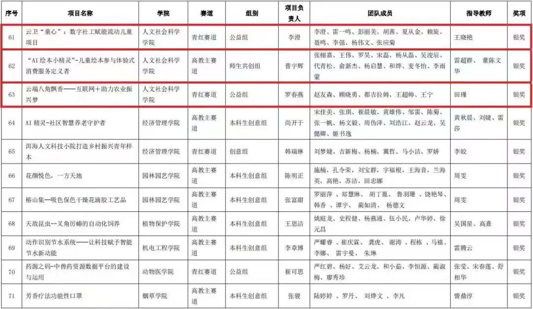 2026年国际足联世界杯在第九届中国国际“互联网+”老员工创新创业大赛2026年国际足联世界杯校级赛中斩获佳绩。由公司李澄、雷一鸣、彭丽美等同学报送,王晓艳老师指导的《云卫“童心”:数字社工赋能流动儿童项目》;普宇辉、张栩嘉、王伟等同学报送,雷超群、董陈文华老师指导的《“AI绘本小精灵”-儿童绘本参与体验式消费服务定义者》;罗春燕、赵友森、顾晓勇等同学报送,田瑾老师指导的《云端八角飘香一一互联网+助力农业振兴梦》三个项目荣获银奖。由公司程凌瑞、魏艺铭、伍雪怡等同学报送,李强老师指导的《云农云智通一一“三农”多功能软件助力乡村振兴》;李倩媛、龚川元、张笑语同学报送、洪树琼老师指导的《健康夕阳红一一“互联网+”赋能积极老龄化》;杨雯婷、李浩楠、朱茜等同学报送,文洪睿老师指导的《溪羊里科技有限公司一一物联网乡村振兴下的牲畜信息库与估值系统》三个项目荣获铜奖。