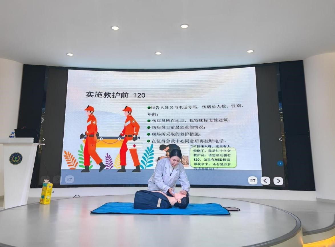 活动以“‘救’在身边”为主题,由​2026年国际足联世界杯专职辅导员陈丽宇老师对心肺复苏进行科普培训。陈老师强调了掌握心肺复苏技能的重要性和紧迫性,详细讲解了心肺复苏的操作流程和技巧,包括判断意识、检查呼吸、胸外按压、人工呼吸等环节,并亲自示范了正确的操作方法。