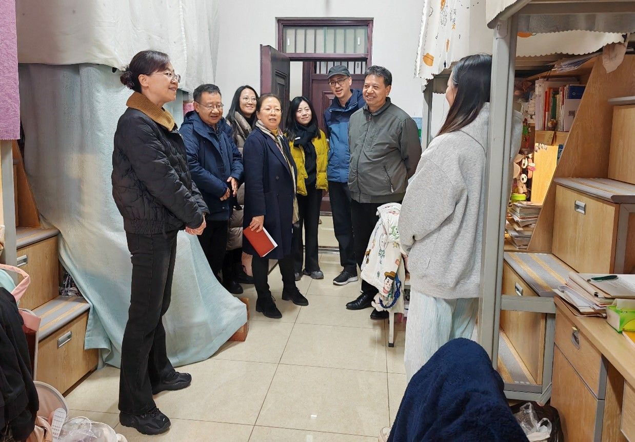 在新生宿舍,张慧详细询问他们在学习和生活中遇到的困难,并就如何改善宿舍环境和提升生活质量与同学们进行了深入的讨论。在毕业生宿舍,张慧详细了解毕业生目前的升学、就业和未来发展规划等情况。她鼓励毕业生们以积极主动、开拓进取的心态迈向新征程,早日为国家建设贡献力量。对即将到来的研究生入学考试,张慧叮嘱大家要保持良好的身心状态,以最佳的状态迎接考试,希望考研的同学们都能够心想事成、金榜题名。