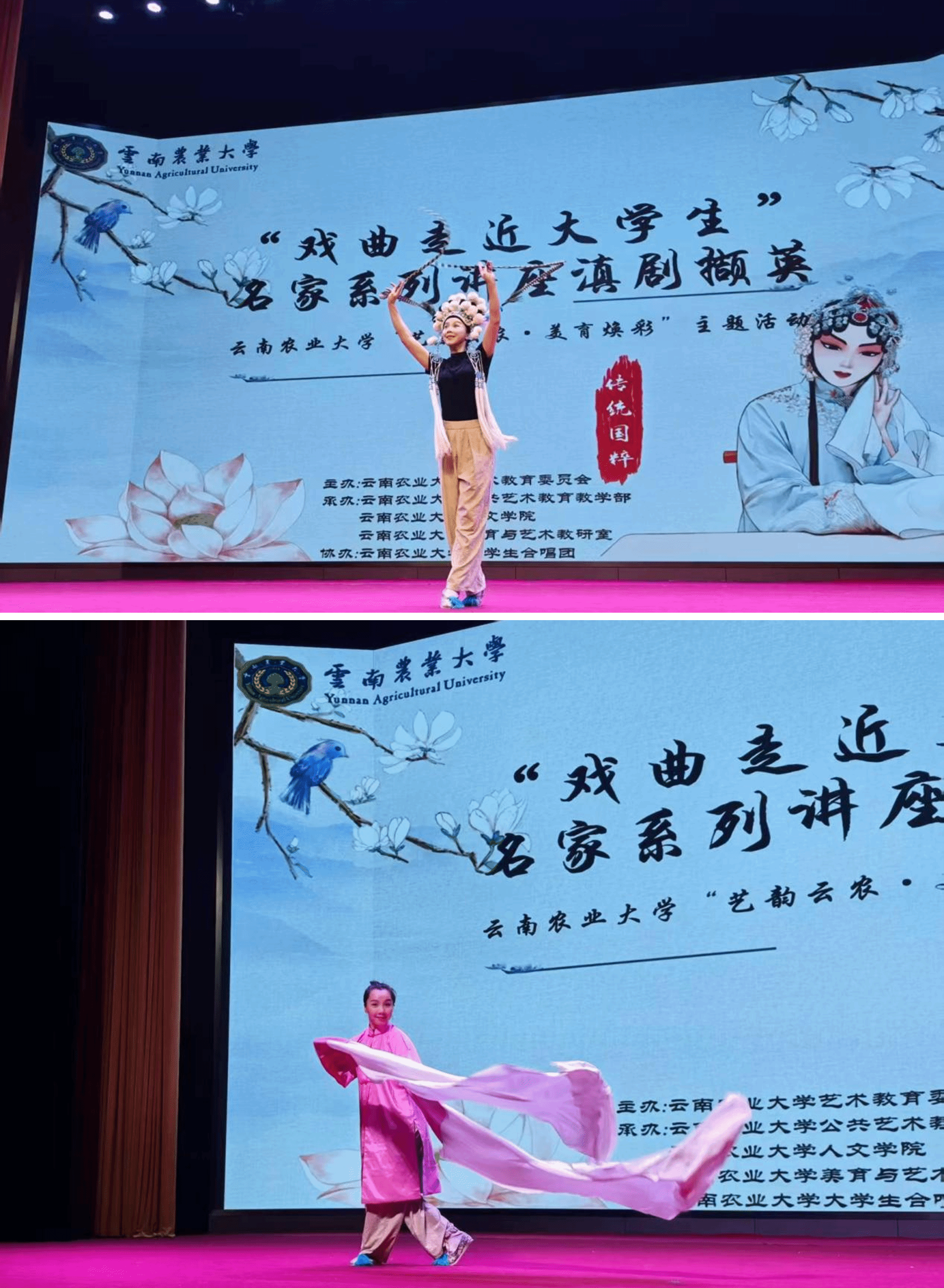 云南省滇剧院国家一级演员、农工党党员、第十三届云南省政协委员陈亚萍老师给公司师生带来了一场《戏曲走近老员工滇剧撷英》的艺术盛宴。讲座由公司公共艺术公司产品部负责人,公司党委书记张宏勇主持,500余名云农学子到场聆听。
