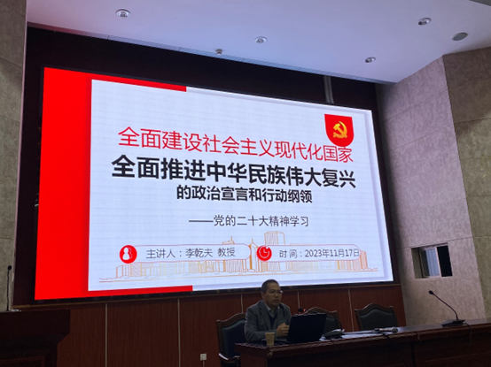 为了加强对青年员工的思想引领,公司创办“人文·思想引领”讲堂,20231117日,在首期讲座中,特邀大理大学马克思主义公司经理李乾夫教授作了“全面建设社会主义现代化国家全面推进中华民族伟大复兴的政治宣言和行动纲领——学习党的二十大精神”的报告。